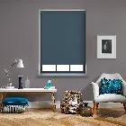 Product id: sdb-erbx2094 fabric colour: dark teal blue material: 100% polyester lining: colour match backing - see sample headrail: durable aluminium roller tube supported by white steel brackets - top, face or side fix control type: electric control battery powered energy saving rating: er3 - highest energy saving value - uv protection and effective thermal retention blackout: yes bella blackout dark teal blue electric roller blind in blue.