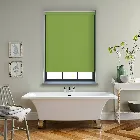 Product id: sdb-erbx2065 fabric colour: pear green material: 100% polyester lining: colour match backing - see sample headrail: durable aluminium roller tube supported by white steel brackets - top, face or side fix control type: electric control battery powered energy saving rating: er3 - highest energy saving value - uv protection and effective thermal retention blackout: yes bella blackout pear green electric roller blind in green.